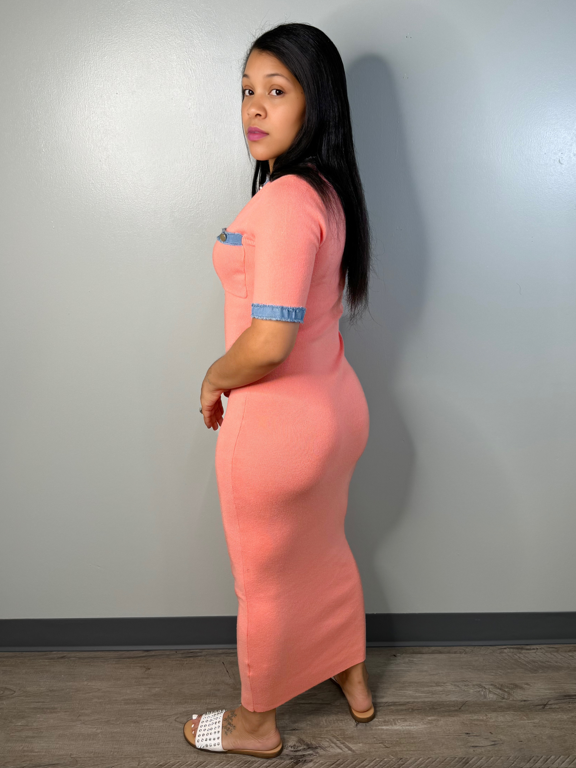 This v-neck ankle dress is the perfect blend of casual glam, designed for the woman who loves to make a statement. The denim outlining adds a chic contrast to the soft fabric, while the short sleeves and ankle length keep things relaxed yet refined. Ideal for daytime outings or casual evenings, this dress can be dressed up or down with ease. Finish the look a pair of cute flats or heels.