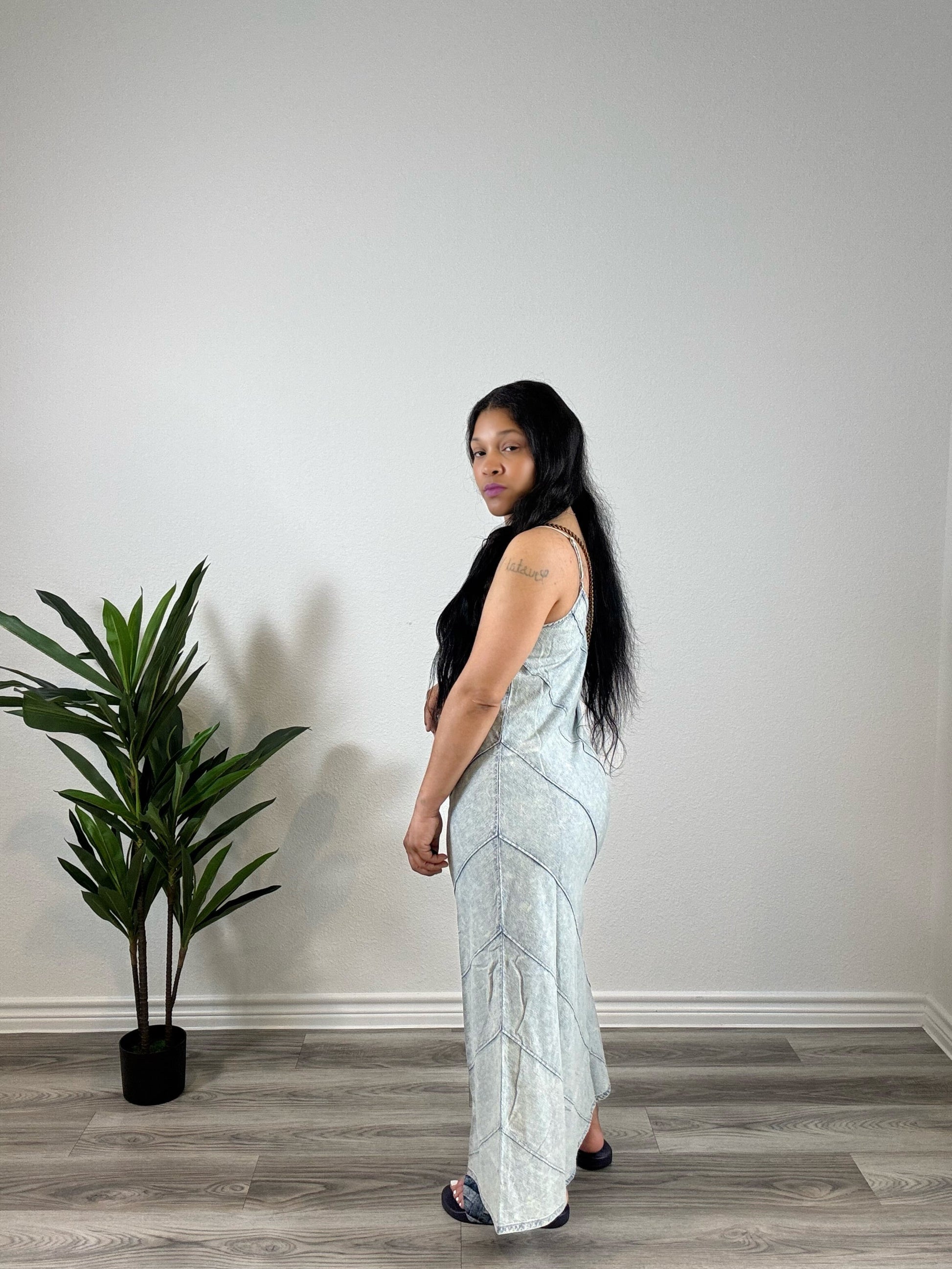 Liora | Soft But Sure - Spaghetti Strap V-Neck Dress (Denim)