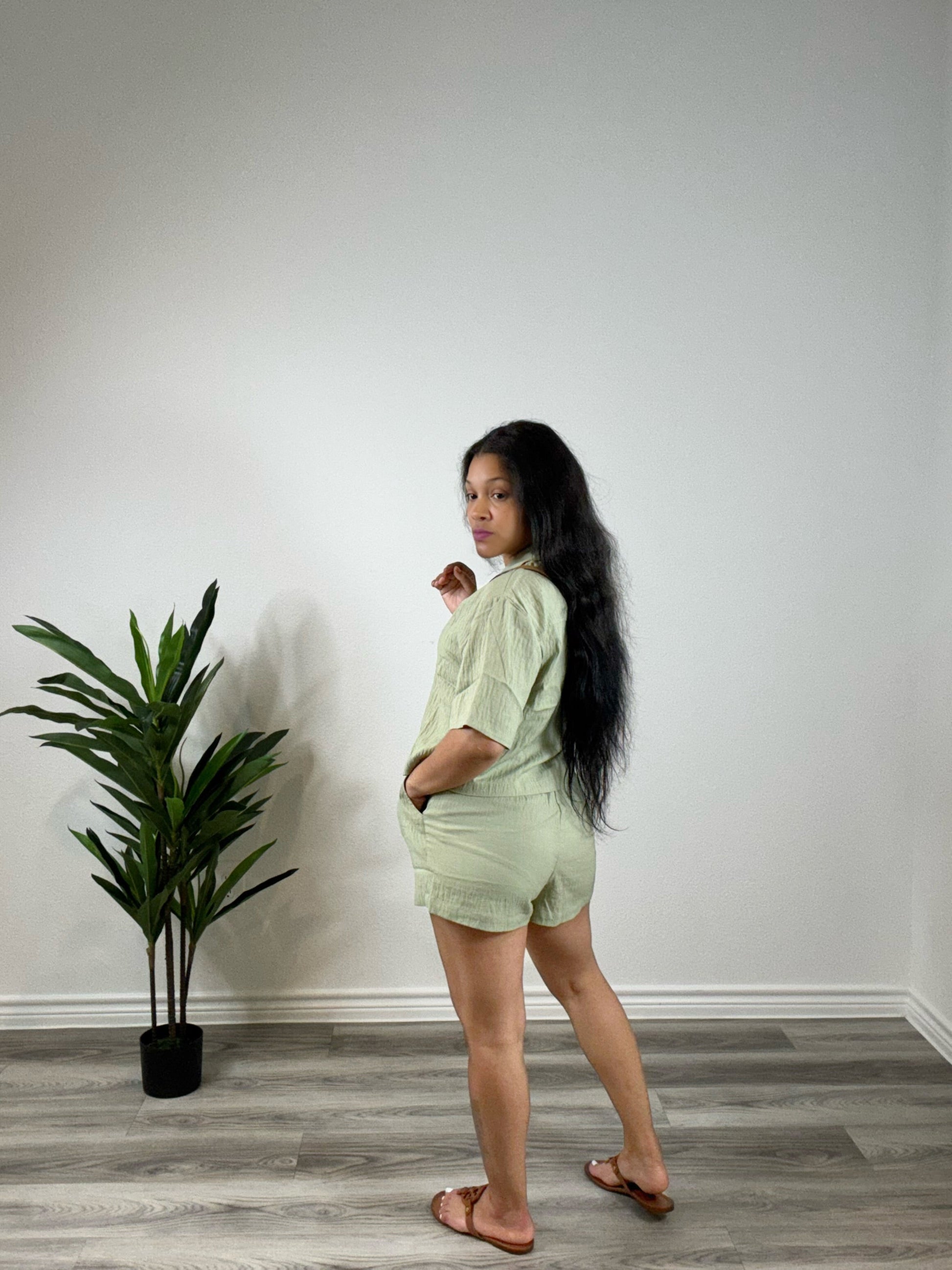Nola | Out of Office - Linen Blend Crop Top & Short Set (Sage)