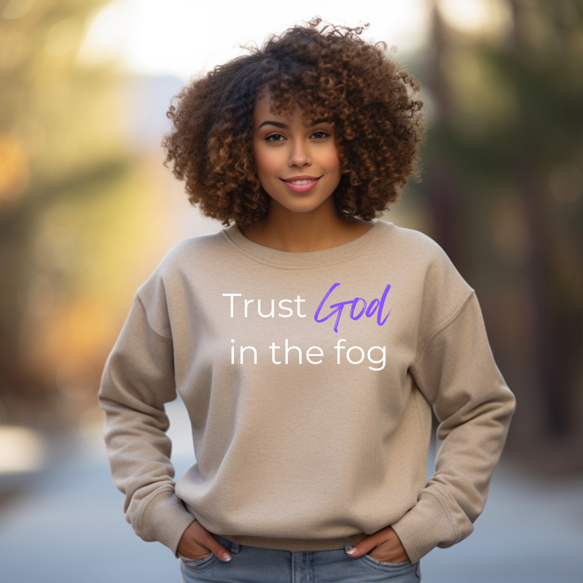 Life may feel foggy at times, but this Sweatshirt reminds you to trust the One who see it all. The 'Trust God in the fog' sweatshirt combines timeless comfort with a faith-forward message. It's relaxed fit and soft, durable fabric make it the perfect choice for casual outings, prayer walks, or lazy weekends at home.